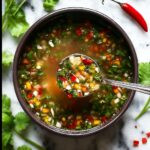 This Sweet Chili Sauce is a vibrant and flavorful condiment combining the perfect balance of tangy vinegar, sweet sugar, savory soy sauce, and a hint of heat from red pepper flakes. Enhanced with fresh garlic, ginger, and green onions, this versatile sauce is ideal as a dipping sauce, glaze, or accompaniment to a variety of dishes. Ready in just 15 minutes, it can be stored in the refrigerator for up to two weeks.