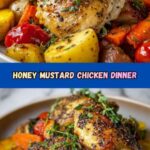 A flavorful and easy-to-make Honey Mustard Glazed Chicken served with perfectly roasted baby red potatoes, carrots, and red onions. This one-pan oven-baked dish combines a sweet and tangy honey mustard sauce with tender chicken breasts and savory vegetables for a wholesome family meal.