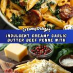 Indulgent Creamy Garlic Butter Beef Penne with Sausage & Spinach Recipe