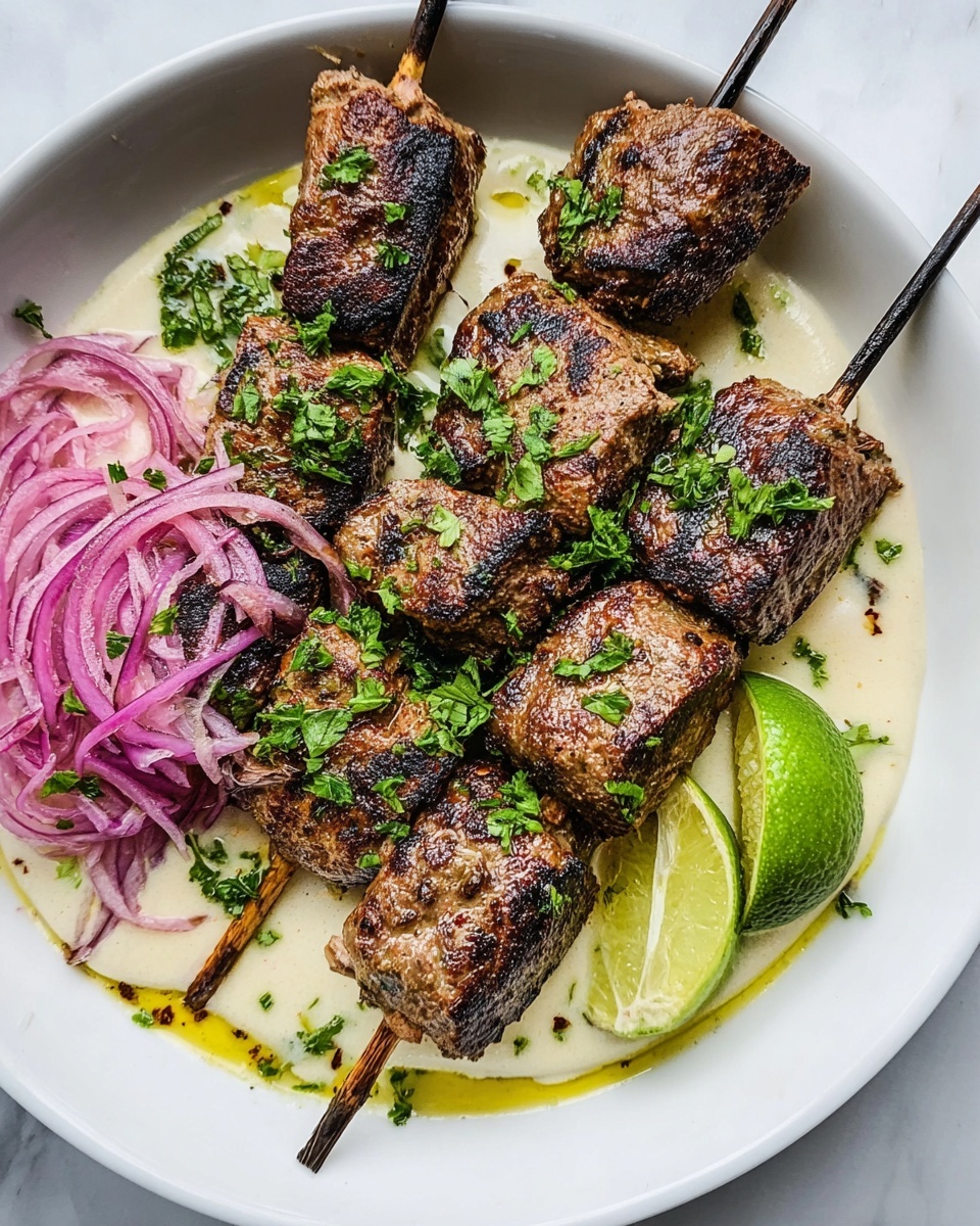 Complement the kebabs with fluffy basmati rice, warm pita bread, or a crisp cucumber and tomato salad to round out the meal with textures that balance the bold flavors.