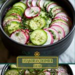 A refreshing and tangy Korean cucumber salad featuring thinly sliced cucumbers tossed in a flavorful dressing of rice vinegar, soy sauce, sesame oil, garlic, and red pepper flakes. This quick and easy no-cook dish makes a perfect side or appetizer with a delicious balance of sweet, salty, and spicy flavors.