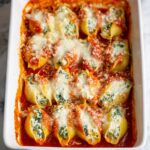 - Stuff the shells: Carefully spoon the ricotta-spinach mixture into each cooked jumbo shell until they are generously filled. Arrange the stuffed shells in a single layer in a 9×13 inch baking dish.