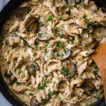 Reheat gently on the stovetop over low to medium heat, stirring occasionally to prevent sticking and to ensure even warming. If the gravy thickens too much, add a splash of broth or water to bring it back to the right consistency. Reheating slowly keeps the turkey tender and the mushrooms succulent.