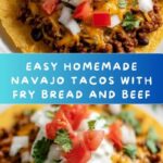 Navajo tacos use fry bread as their base instead of a traditional corn or flour tortilla. This creates a crispy, puffy, and slightly chewy foundation that adds a unique texture and flavor dimension to the toppings.