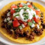 Lay a piece of warm fry bread on a plate and pile on the flavorful beef and bean mixture. Next, add shredded lettuce for crunch, diced tomatoes for freshness, and a generous sprinkle of shredded cheese that will melt slightly into the warm toppings. Finally, dollop some sour cream or Greek yogurt and add a spoonful of salsa or pico de gallo for that perfect finishing touch. Your Navajo tacos are almost ready to enjoy!