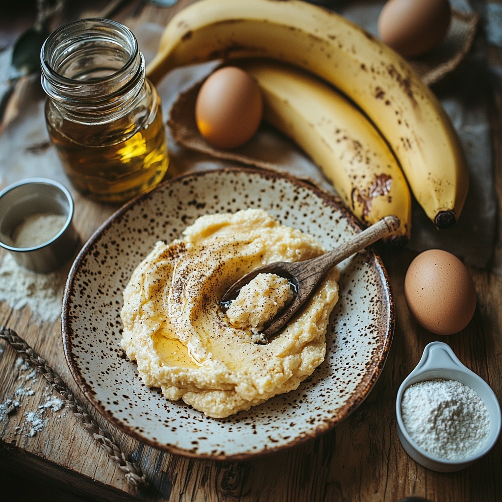 - Mash bananas and mix sugar: In a large bowl, thoroughly mash the ripe bananas with a fork. Add the granulated sugar and stir until the mixture is well combined.