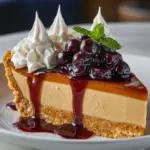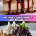 This Peanut Butter & Jelly Cheesecake is a creamy and indulgent dessert that combines the classic flavors of peanut butter and jelly with a smooth, baked cheesecake base. Featuring a buttery biscuit crust and a vibrant jam swirl, it’s perfect for fans of the nostalgic PB&J sandwich elevated into a luscious treat.