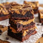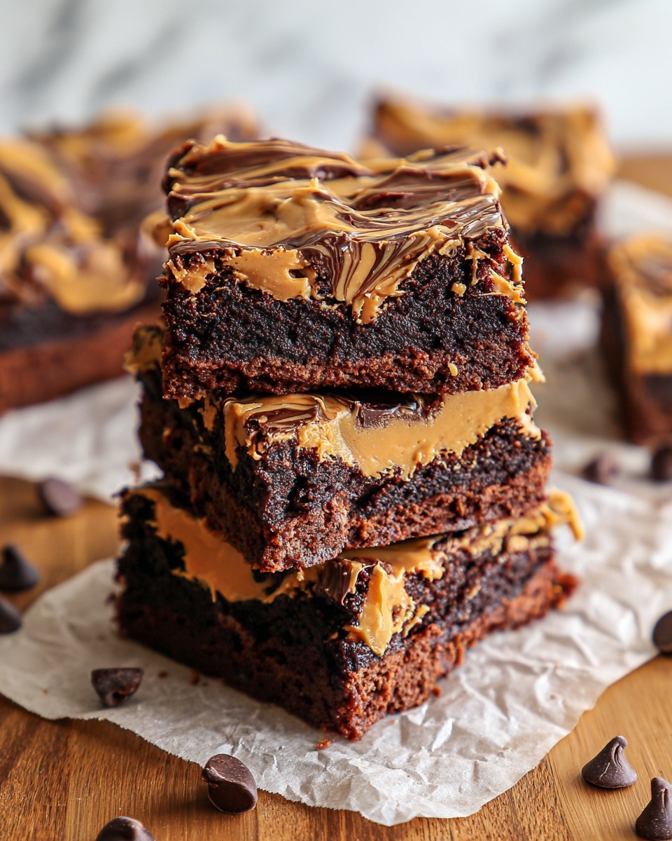 They are wonderfully fudgy with a moist crumb, thanks to the peanut butter and careful baking time—perfect for those who love a chewy brownie.