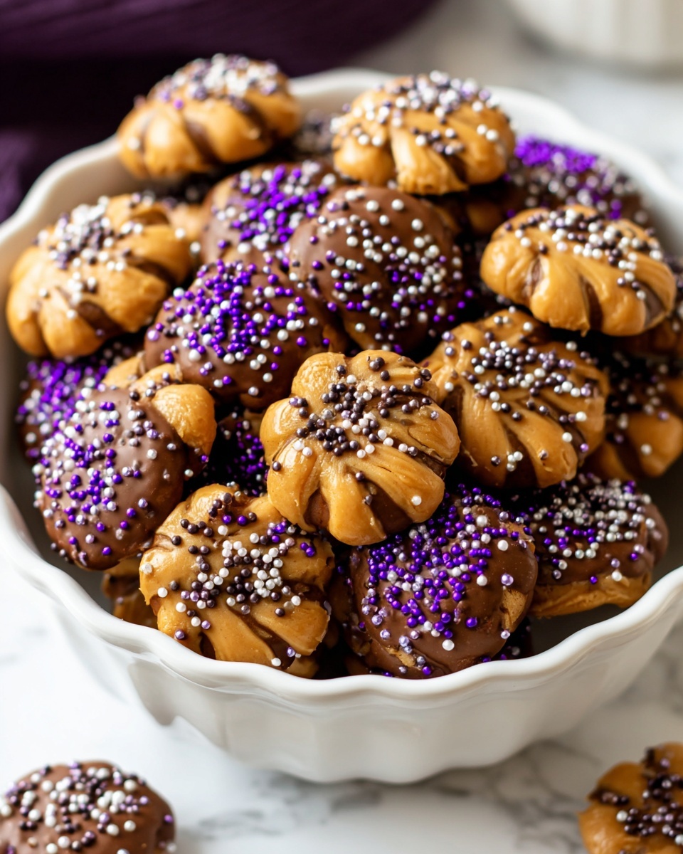 Peanut Butter Pretzel Bites are a delightful combination of crunchy pretzels filled with smooth creamy peanut butter, then coated in rich semi-sweet chocolate and optionally topped with sprinkles or crushed nuts. These bite-sized treats are perfect for snacking or serving at parties and require no baking, making them a quick and easy dessert to prepare.