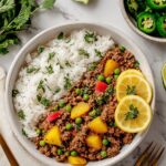 A sprinkle of freshly chopped cilantro or parsley on top adds a fresh herbal note and a burst of color. A wedge of lime on the side introduces zest and brightness that complements the hearty richness of the Picadillo.