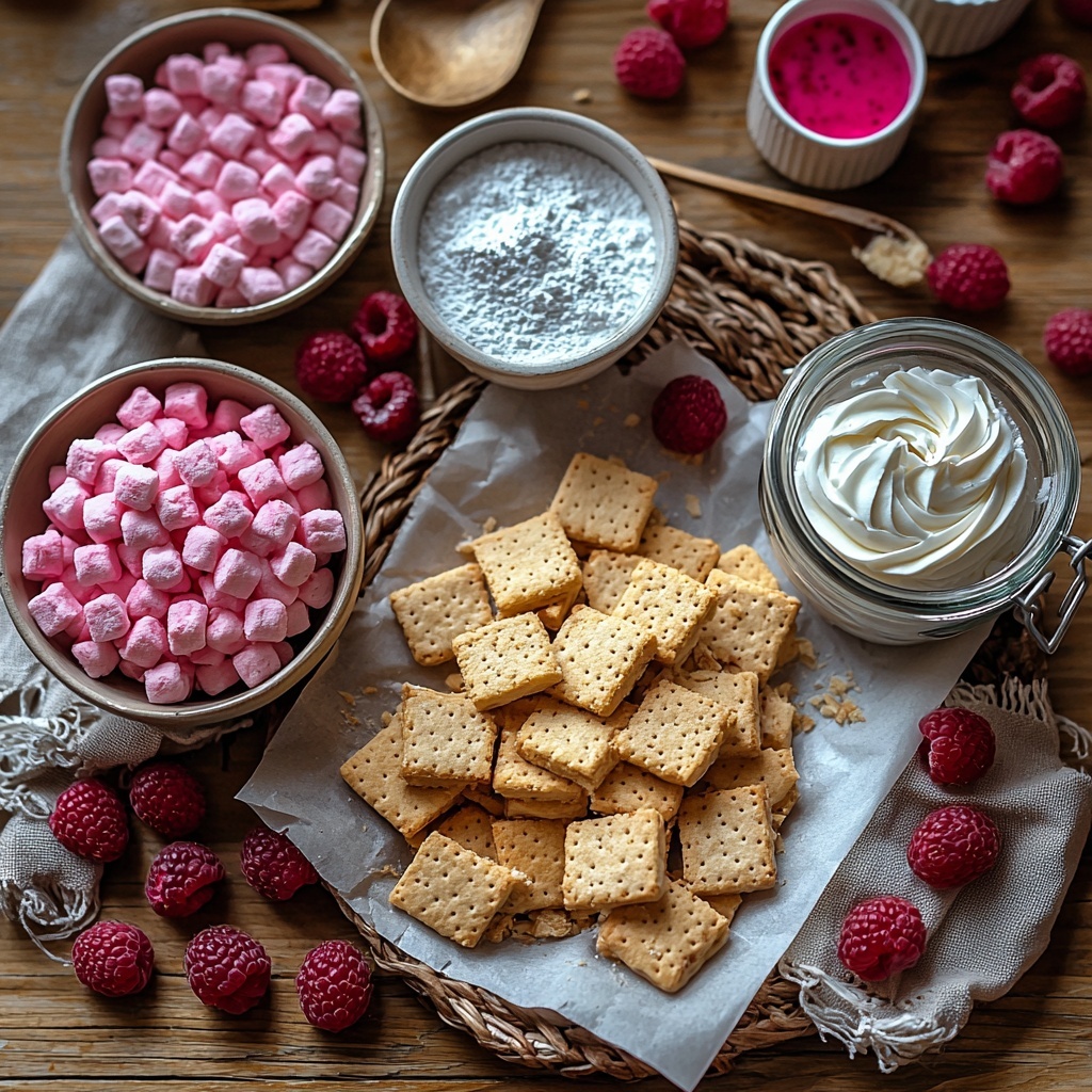 Gathering the right ingredients is the first step to baking your Pink Velvet Raspberry Cheesecake Recipe masterpiece. Each one plays a vital role in delivering that perfect balance of creamy richness, fruity brightness, and delicate texture that defines this cheesecake.