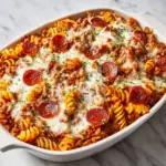 Pizza Pasta Casserole is a delightful fusion dish combining the flavors of classic pizza with hearty pasta baked in a rich marinara sauce, layered with mozzarella, Parmesan, and pepperoni. This comforting Italian-American casserole is perfect for family dinners and can be prepared ahead for convenience.