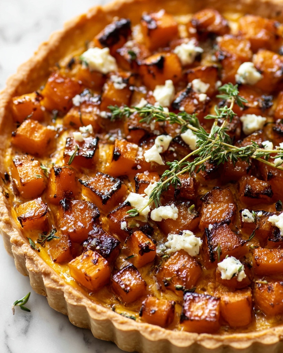 This Savory Butternut Squash Pie is a comforting and flavorful dish perfect for fall and holiday meals. Featuring a creamy blend of roasted butternut squash, sautéed onions, garlic, Gruyère cheese, and warm spices baked into a flaky pie crust, it makes a hearty vegetarian main course or a delicious side.