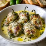 This Savory Cheese Stuffed Banana Peppers Soup is a creamy, comforting dish that uniquely combines roasted, cheese-stuffed banana peppers with a rich broth base. The soup features a delicious blend of mozzarella, cream cheese, and Parmesan baked inside banana pepper halves, then simmered with aromatic onions, garlic, thyme, and heavy cream, and finally blended into a smooth, velvety soup. Perfect as a warming appetizer or main course, it’s ideal for cheese lovers seeking a flavorful twist on traditional pepper soups.
