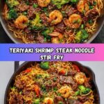 A delicious and hearty Shrimp Teriyaki Steak Noodles recipe combining tender flank steak, succulent shrimp, and vibrant vegetables tossed in a savory homemade teriyaki sauce over egg noodles, perfect for a quick and satisfying Asian-American main course.