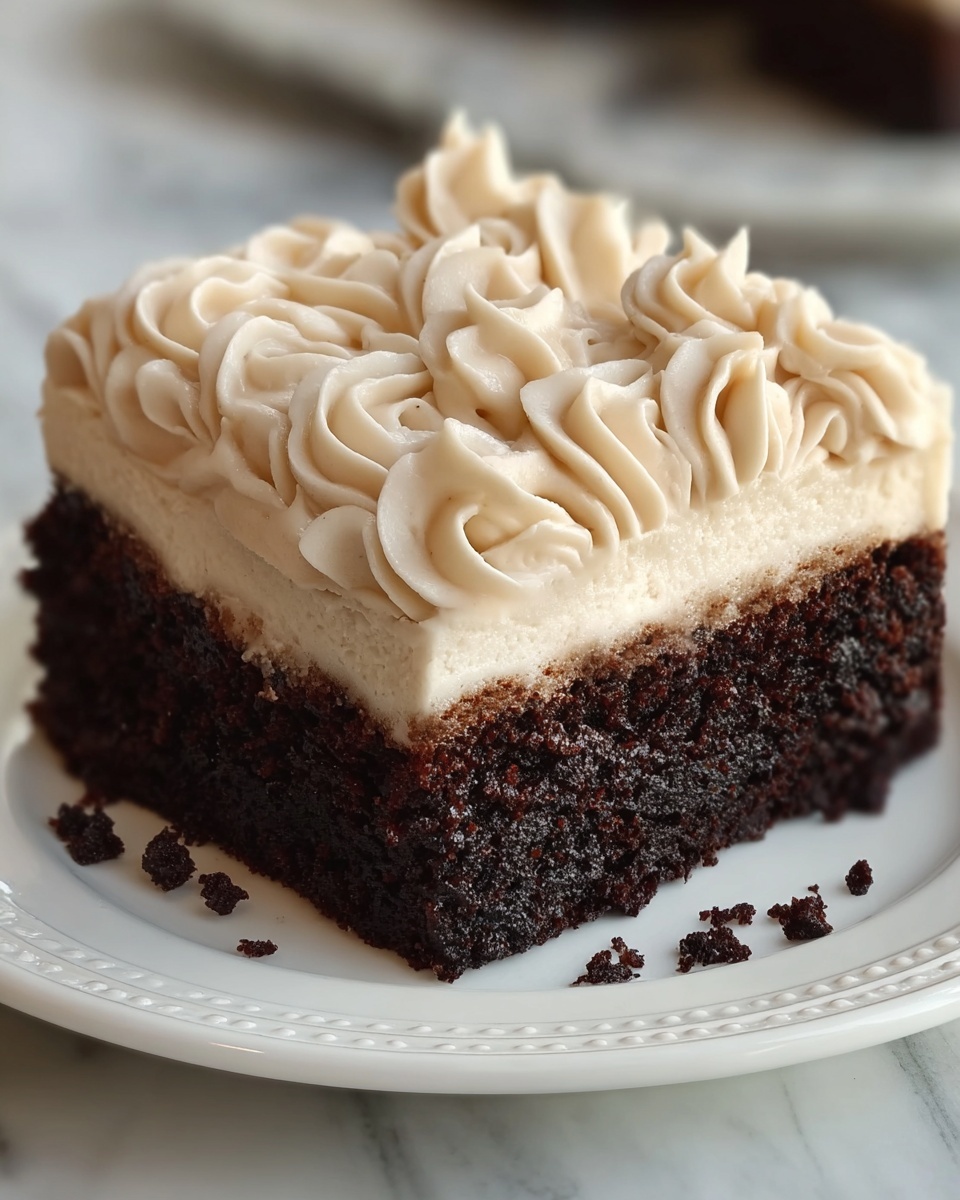 Spread the frosting evenly over the cooled cake using a spatula. If you want precision, a serrated knife edge or offset spatula works beautifully. The frosting will set nicely if you let the cake chill afterward but tastes amazing even right away.