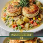 A comforting and hearty Slow Cooker Chicken Pot Pie that combines tender chicken, fresh vegetables, and a creamy broth, all slow-cooked to perfection and topped with flaky baked biscuits for a classic homemade meal.