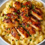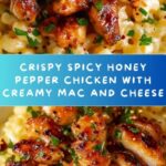 This Spicy Honey Pepper Chicken with Creamy Mac and Cheese is a decadent comfort food dish featuring crispy fried chicken coated in a sweet and spicy honey pepper glaze, served over rich, cheesy macaroni. The marinated chicken stays tender and juicy, while the homemade sauce adds a perfect kick of heat balanced by honey’s sweetness. Paired with a creamy blend of sharp cheddar and Parmesan mac and cheese, this hearty meal is sure to satisfy your craving for classic American flavors with a spicy twist.