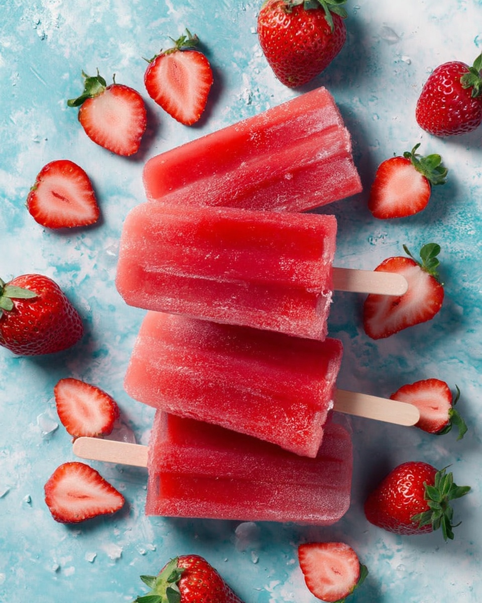Garnishing your Strawberry Moscato Popsicles Recipe makes serving even more special. Try adding a fresh strawberry slice or a sprig of mint on the top before freezing, or dust lightly with edible glitter for a festive look. These little touches add visual appeal and a fragrant hint that complements the popsicle’s flavors.
