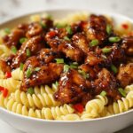 Transfer your crispy chicken into a large bowl, pour the thickened sauce over it, and toss well to coat every piece in that incredible sweet and spicy glaze. The sauce clings lovingly to the chicken, giving you bite after bite of vibrant flavor.