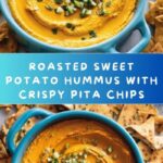 This Sweet Potato Hummus with Pita Chips is a delicious, healthy twist on classic hummus. Roasted sweet potatoes add natural sweetness and creaminess, blended with chickpeas, tahini, and spices for a smooth, flavorful dip. Served with crispy homemade whole wheat pita chips, it’s perfect as a vegan and gluten-free-friendly appetizer or snack with Middle Eastern-inspired flavors.