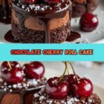 This Swiss Chocolate Cherry Roll Cake is a decadent dessert featuring a light cocoa sponge rolled with fluffy almond-scented whipped cream and luscious cherry pie filling. Topped with a rich chocolate ganache and garnished with fresh cherries and chocolate shavings, it is a perfect show-stopper for holidays or special occasions.