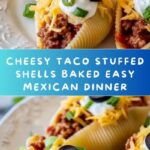 Taco Stuffed Shells are a delicious Mexican-inspired baked pasta dish featuring jumbo pasta shells filled with a flavorful ground beef and taco seasoning mixture, combined with salsa, sour cream, and cheeses, then baked with enchilada sauce and topped with melted cheddar and Monterey Jack cheese. This hearty and comforting meal is perfect for a family dinner or casual get-together.