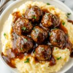 Simple garnishes elevate your plate and add a fresh contrast to the rich meatballs. Try sprinkling chopped fresh parsley or chives on top—they brighten up the dish visually and add a subtle herbal note that complements the gravy perfectly.