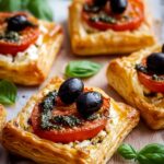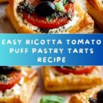 These Tomato, Black Olive, and Ricotta Puff Tarts are a delicious Mediterranean-inspired appetizer featuring flaky puff pastry topped with a creamy ricotta mixture, fresh tomato slices, and briny black olives. With a hint of lemon zest and fresh basil, these tarts bake to golden perfection, making for a perfect light lunch or elegant starter.