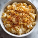 - Add Cheese Topping: Sprinkle the reserved ½ cup of grated Cheddar cheese evenly over the top of the macaroni mixture, then lightly dust with a dash of paprika for color and a hint of flavor.